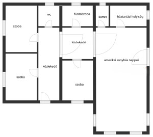 A ház kiváló elrendezésű, tágas terekkel és praktikus helyiségkiosztással rendelkezik: