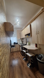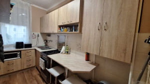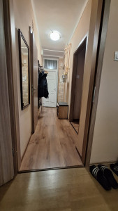 A lakásban egy tágas közlekedő is helyet kapott, melyről jobbra a kamra, balra a konyha nyílik.