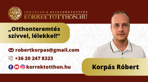 A közös költség mindössze 10.000 Ft, amely tartalmazza a gondozott, parkosított kert fenntartását is — külön megbízott személy végzi a karbantartást, így mindig rendezett környezet várja a lakókat.