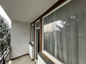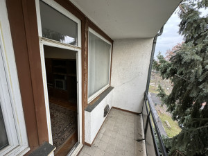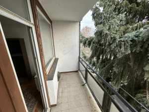 A lakáshoz tartozik egy erkély, amelyet egy előtte magasodó fenyőfa természetes módon takar — tökéletes hely a reggeli kávéhoz vagy esti pihenéshez.